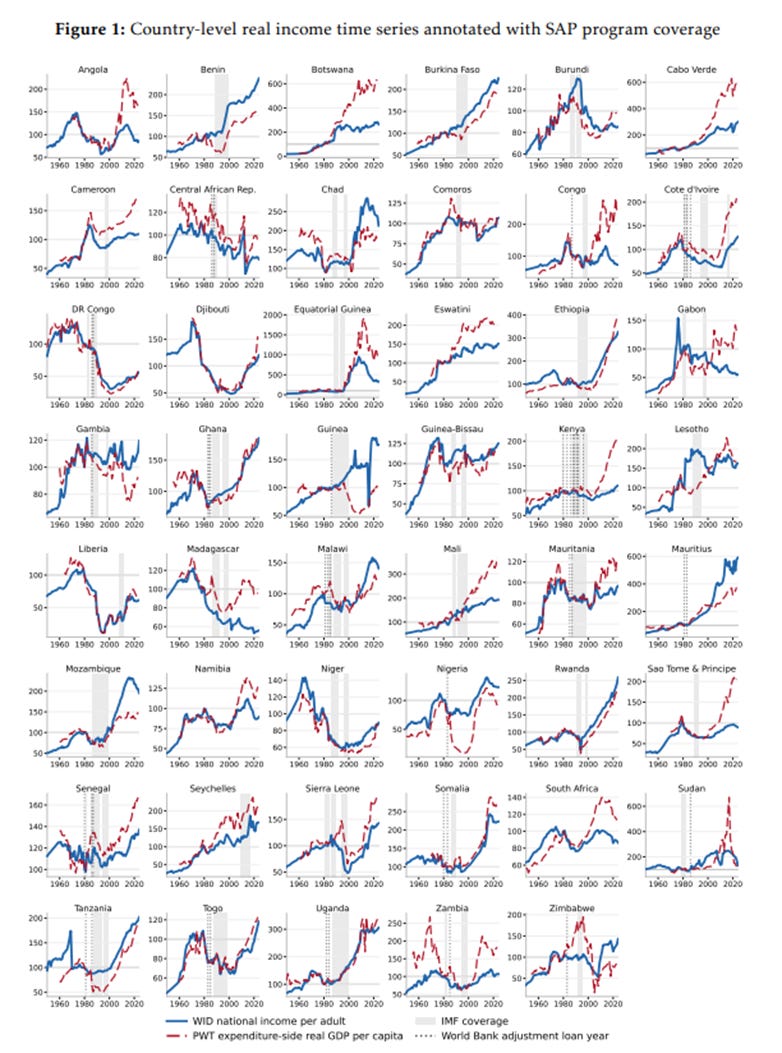 Once the data are disaggregated to the country level, Hickel’s simple morality tale begins to fall apart, as shown above in figure 1 from Callais et al. Some countries experienced severe economic declines in the 1980s without ever entering SAPs. Others received such programs and later saw substantial improvements in living standards. That does not prove the programs were beneficial. But it does show that the claim “SAPs caused the regional collapse” is far too crude to survive contact with the underlying variation.