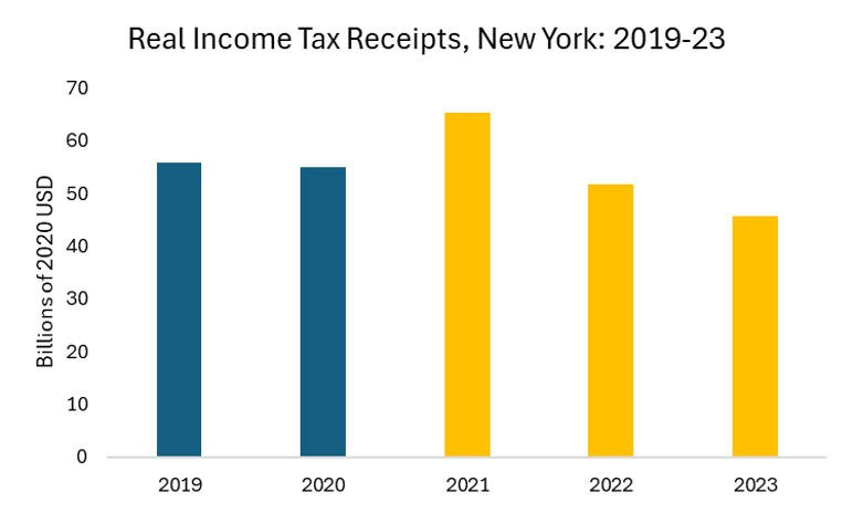 New York isn’t the only state to impose additional taxes on millionaires in recent years. In 2023 Massachusetts imposed a new 4 % surtax on incomes over $1 million added to its existing 5% flat tax. Voters approved this measure via referendum in 2022, and politicians promised a surge of new revenues.
