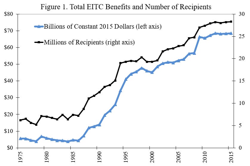 So we were skeptical about the EITC’s supposed work benefits based on the 1990’s experience, as were some other researchers such as Lawrence Mead. But the dominant narrative was that the expensive program was some sort win for everyone in the economy.