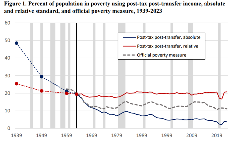 In short, they create a consistent income yardstick that runs from 1939 through 2023. With consistent measurement, we can finally compare the periods before and after the War on Poverty with fewer methodological excuses.