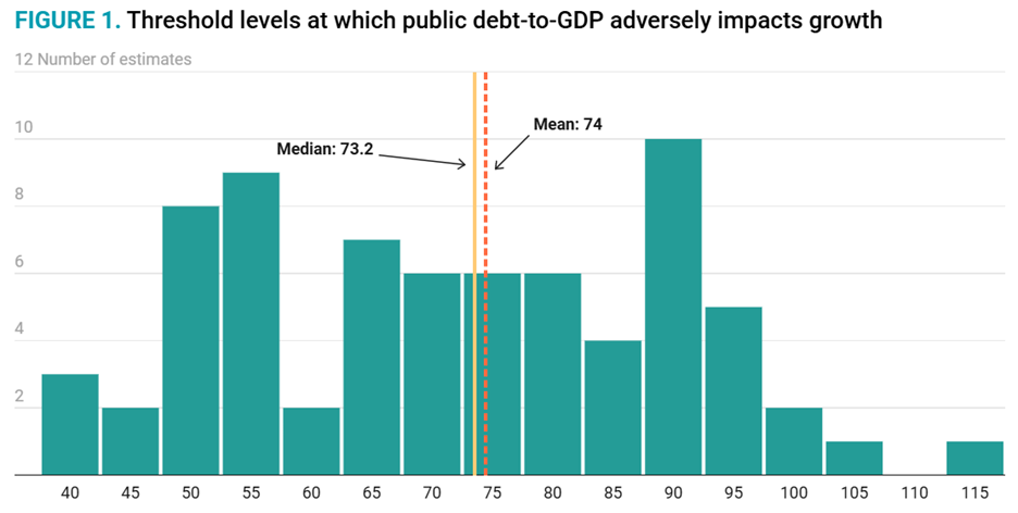 Source: The Impact of Public Debt on Economic Growth: What the Empirical Literature Tells Us. Last updated on January 7, 2026. https://www.mercatus.org/research/policy-briefs/impact-public-debt-economic-growth-what-empirical-literature-tells-us